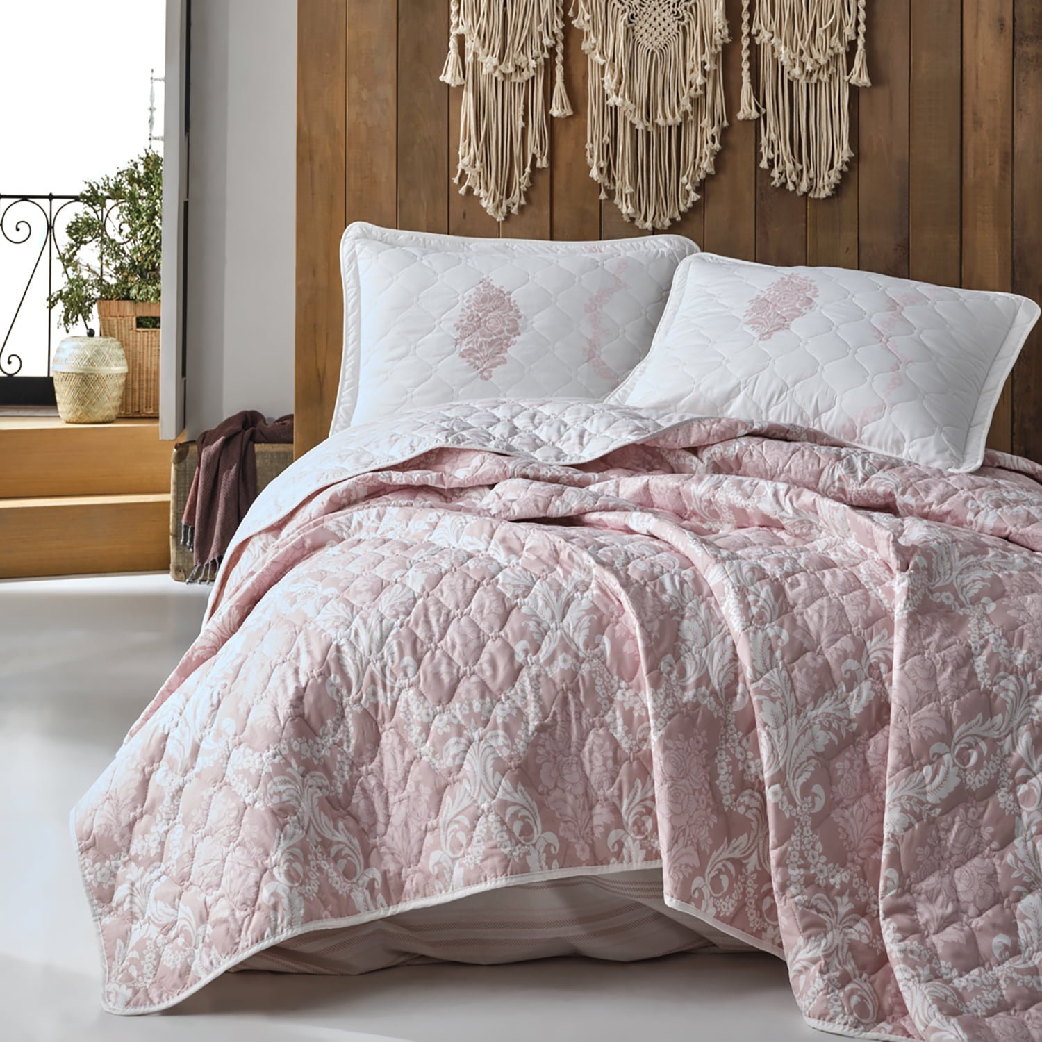 Un aspect important este că această cuvertură este reversibilă, oferindu-ți posibilitatea de a schimba aspectul dormitorului cu ușurință. De asemenea, setul include și două fețe de pernă măsurând 50×70 cm, completând astfel ansamblul și asigurându-se că întregul decor este armonios.