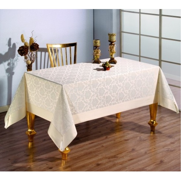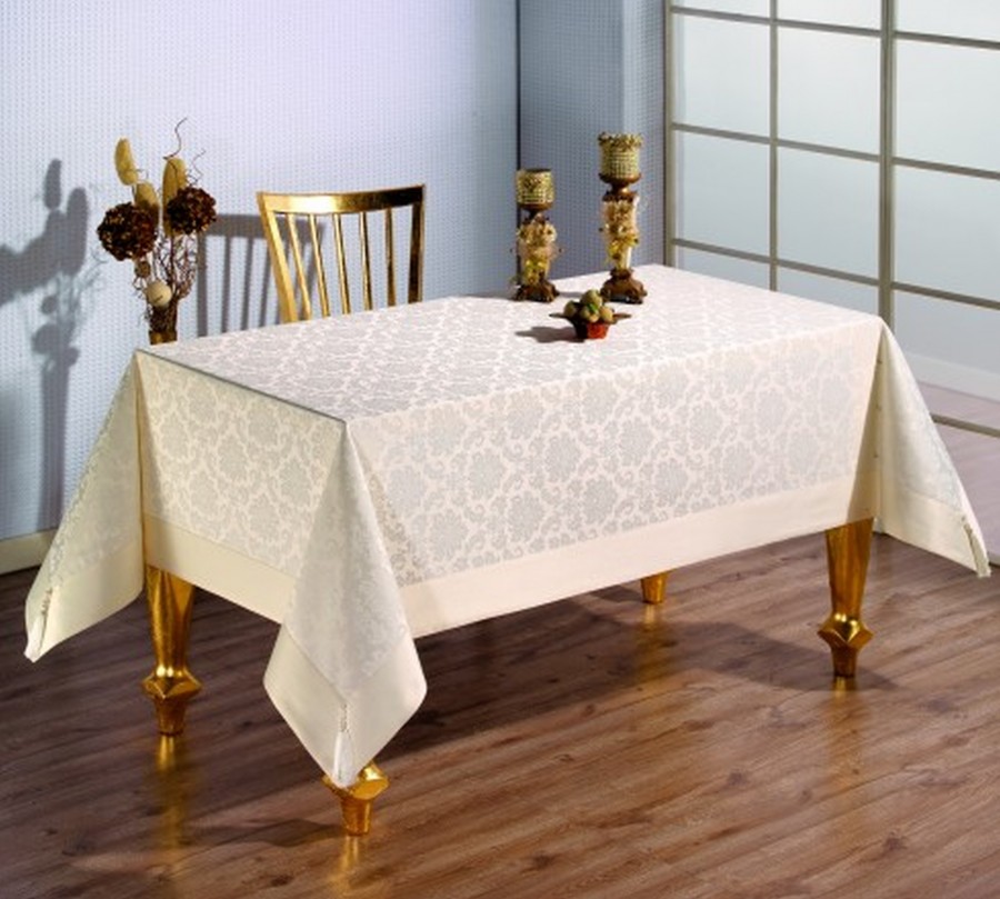 Caracteristici Față de masă 140×200 cm Jaquard Damasc cu imprimeu tesut Crem: