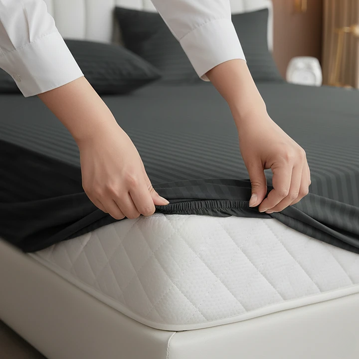 Elasticul rezistent, aplicat pe toată circumferința, permite o fixare precisă, fără alunecare, cute sau deplasări în timpul utilizării. Husa rămâne perfect întinsă chiar și în cazul mișcărilor frecvente din timpul somnului.