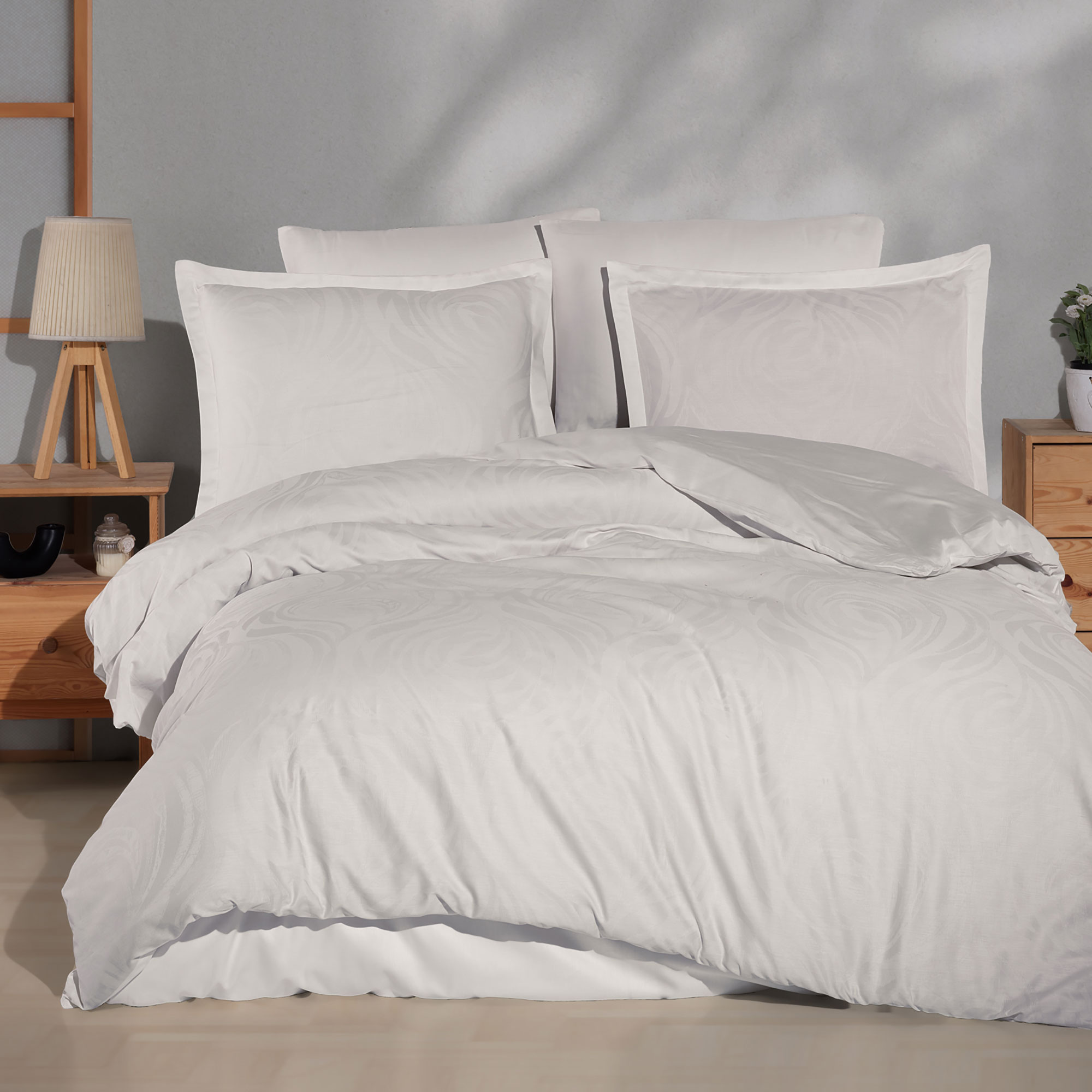 Lenjerie 6 Piese Jacquard Deluxe TARVA– o capodoperă a rafinamentului și confortului, la un preț ce îmbină luxul cu accesibilitatea. Fabricată din cele mai selecte materiale, această lenjerie de pat Jacquard Deluxe redefinește standardele de eleganță și confort în dormitorul tău.