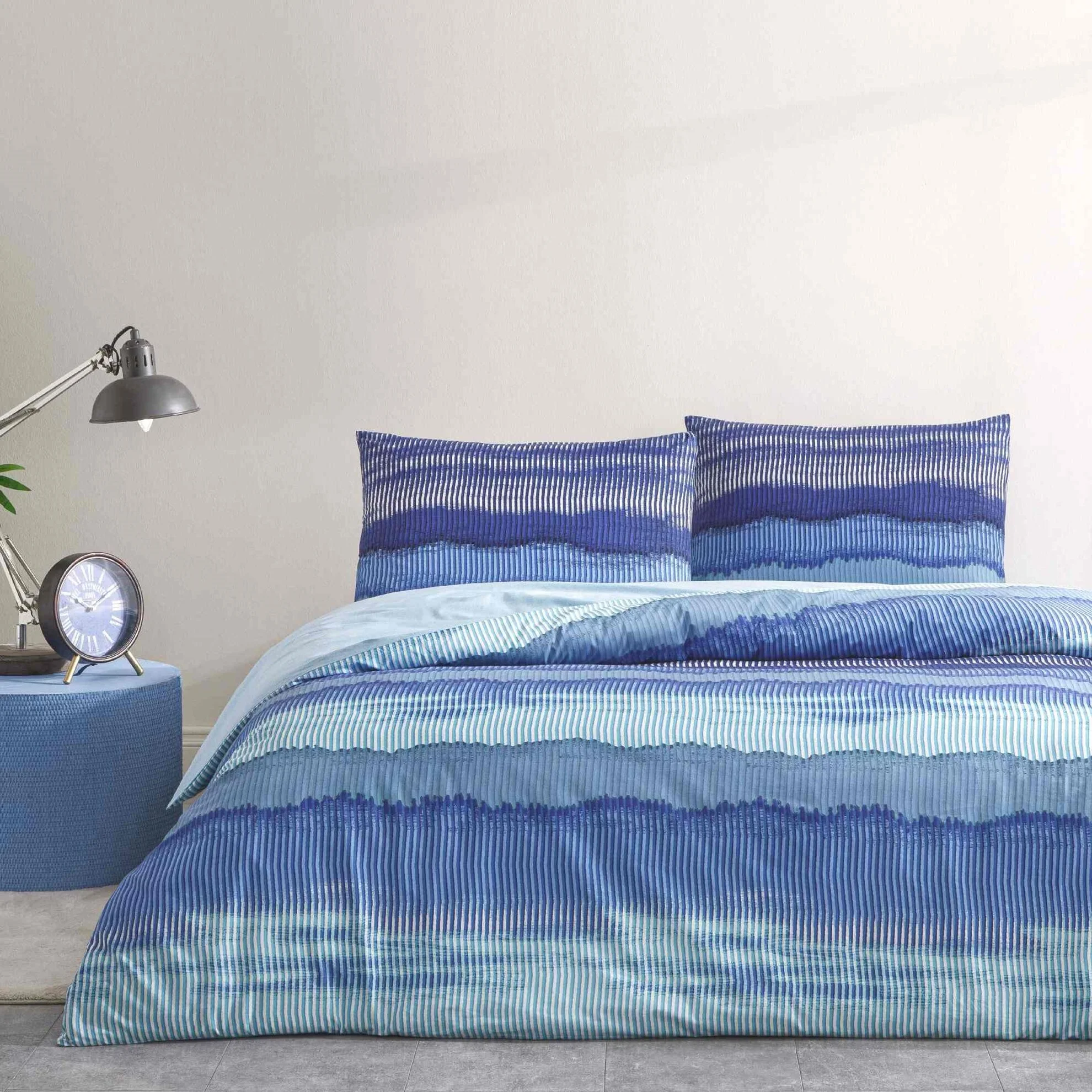 Dimensiuni Lenjerie cu elastic 160x200cm TAC 100% bumbac ranforce Wave Albastru