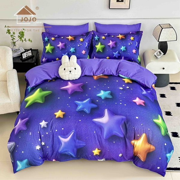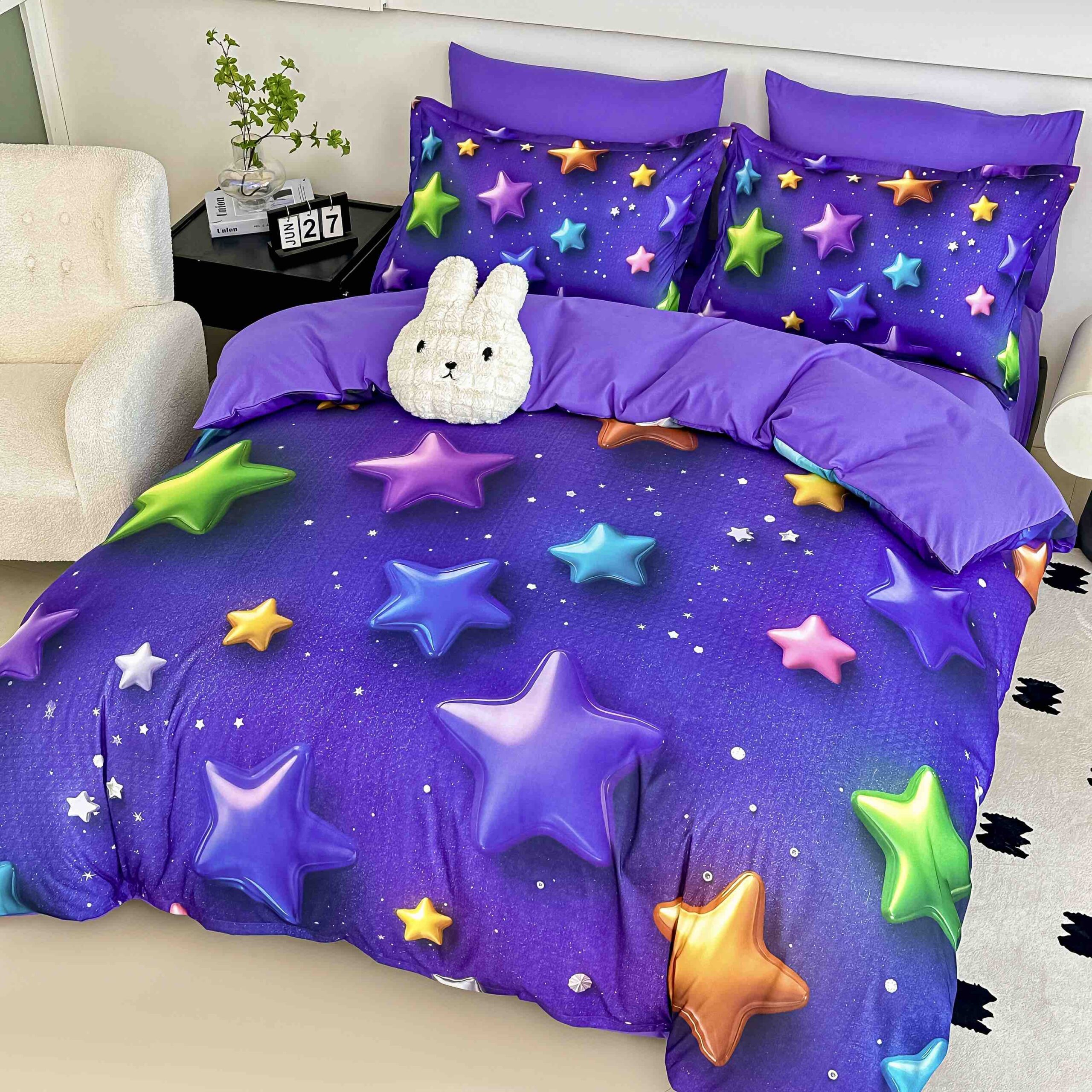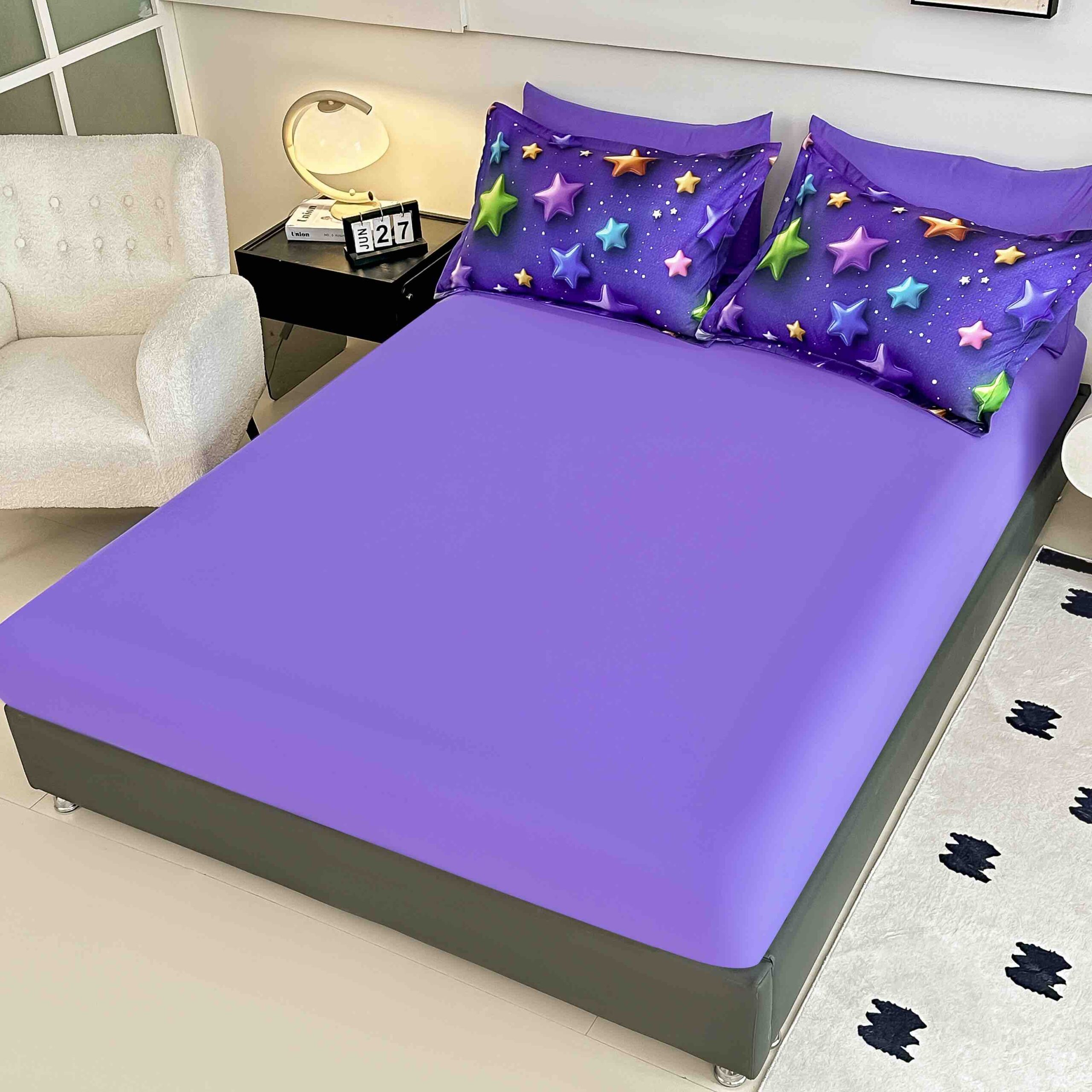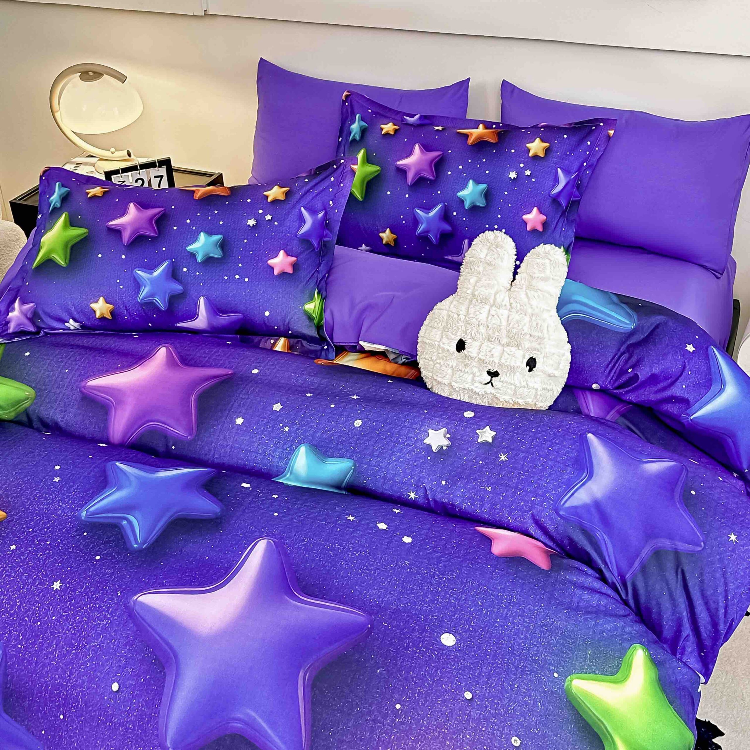Lenjerie de Pat 6 Piese – Finet, Cearșaf cu Elastic, Imprimare Digitală 5D-Stelute