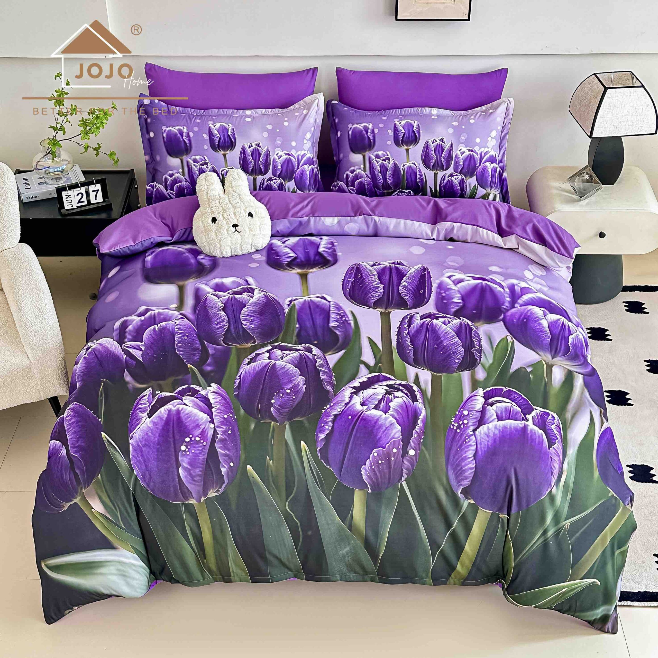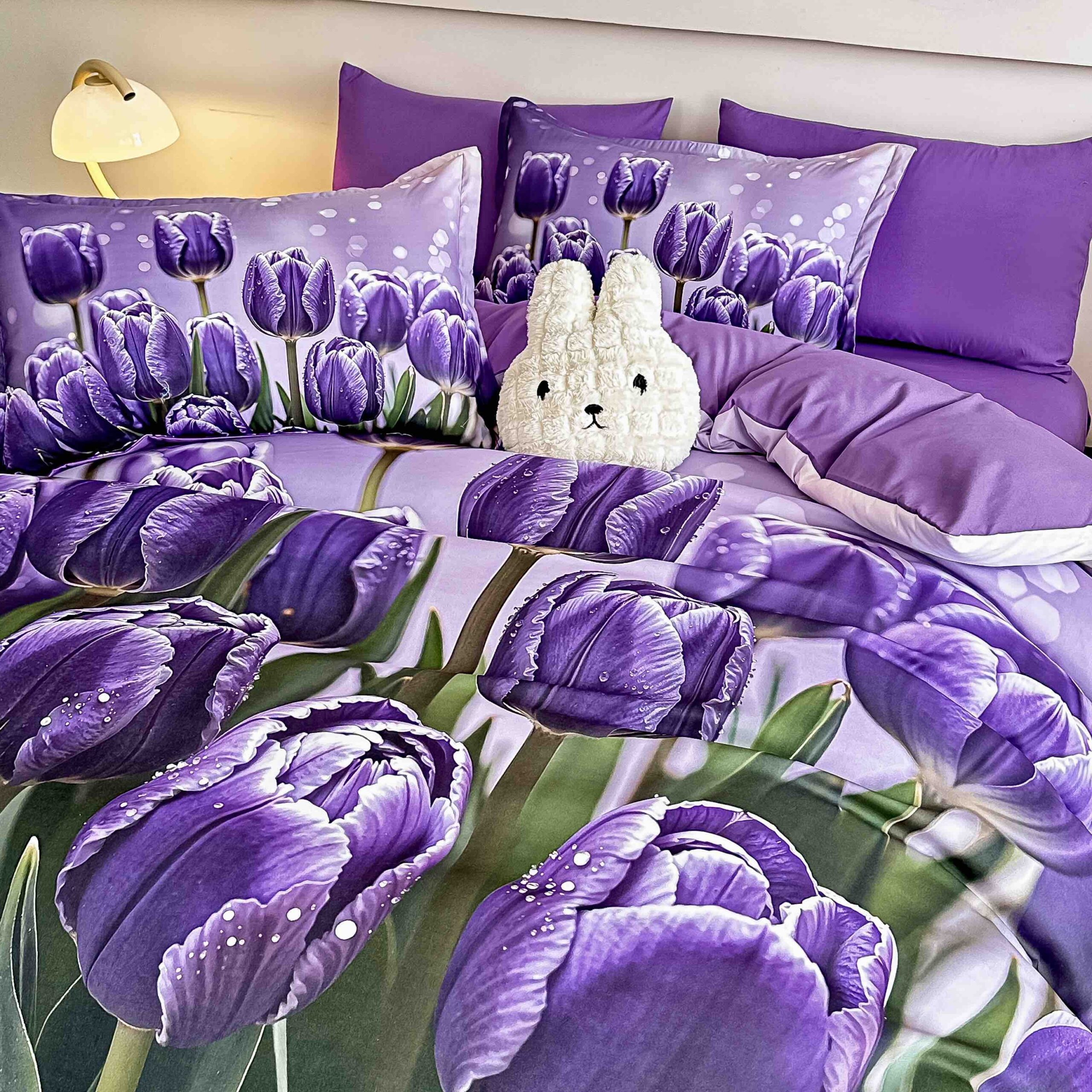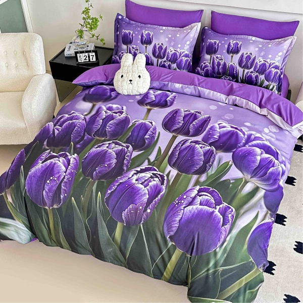 Lenjerie de Pat 6 Piese – Finet, Cearșaf cu Elastic, Imprimare Digitală 5D-Fluturi Lalele