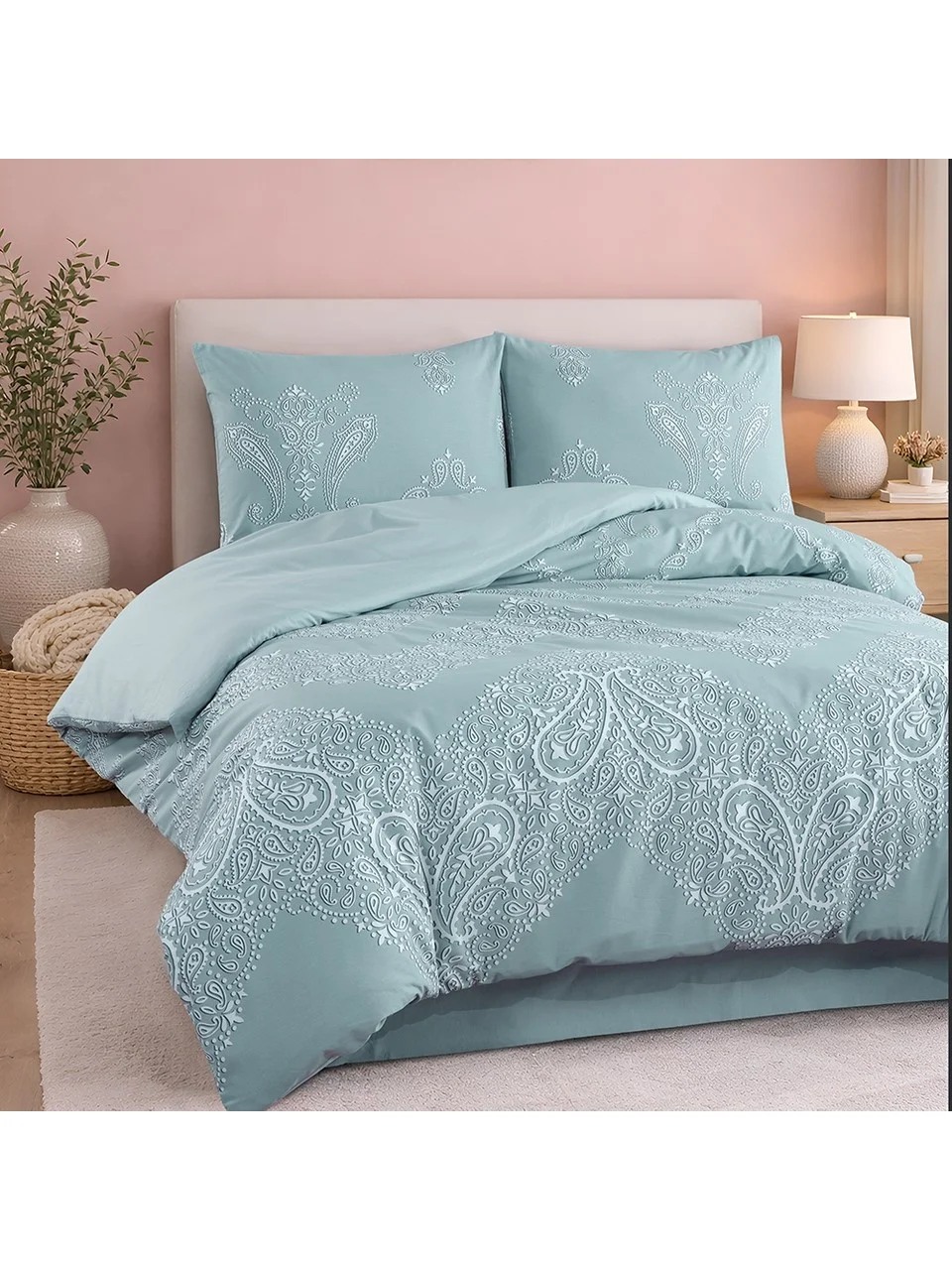 Descoperă confortul autentic cu această lenjerie de pat cu elastic din bumbac Ranforce 100%, model Aqua PAMUK, creată pentru un somn odihnitor și un dormitor elegant.
