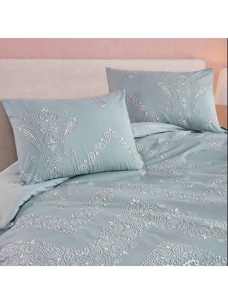 Lenjerie de Pat cu Elastic 160×200 Aqua PAMUK, Bumbac Ranforce 100%