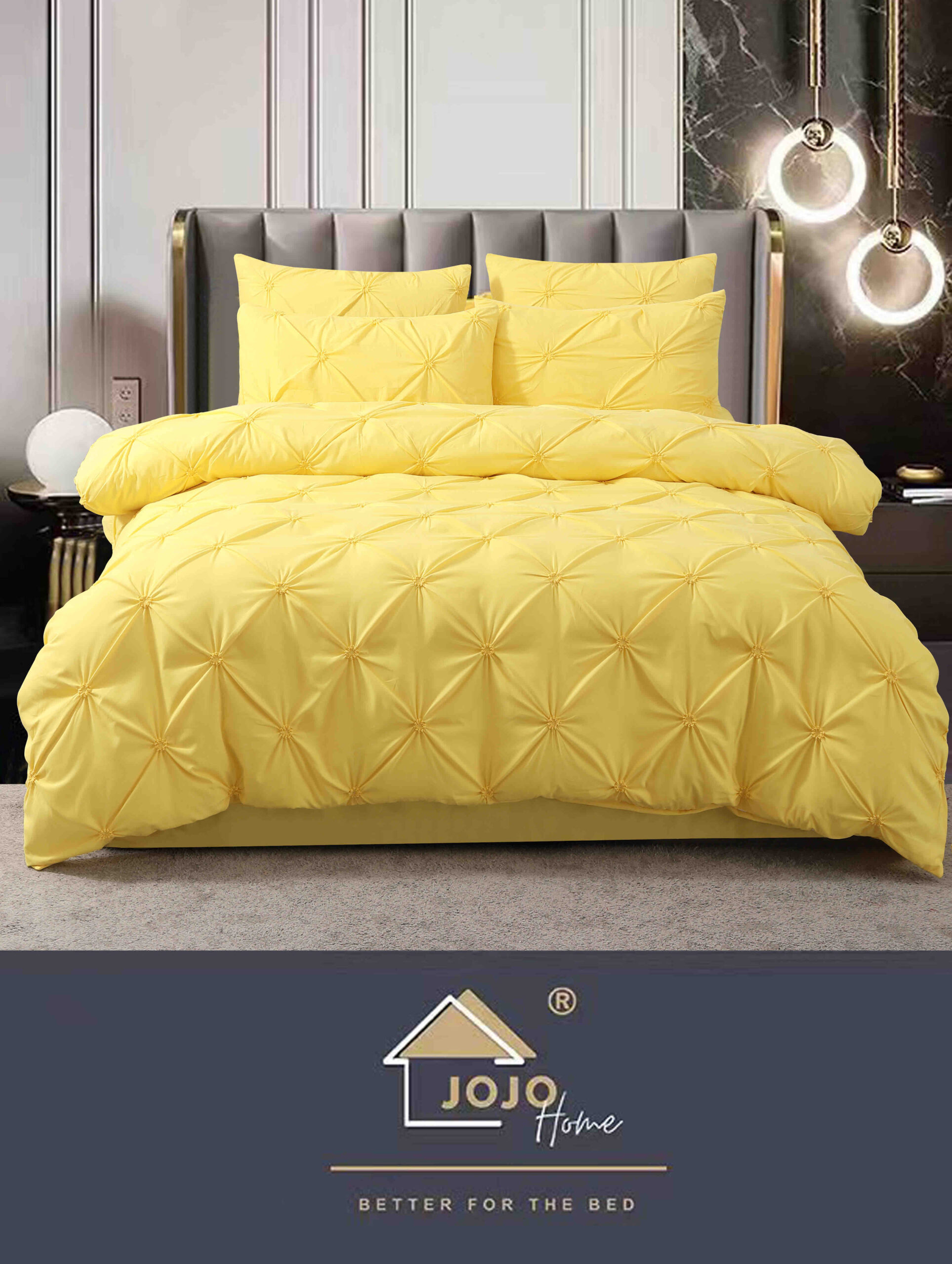 Descriere Lenjerie de pat Finet cu pliuri 6 piese Galben M1