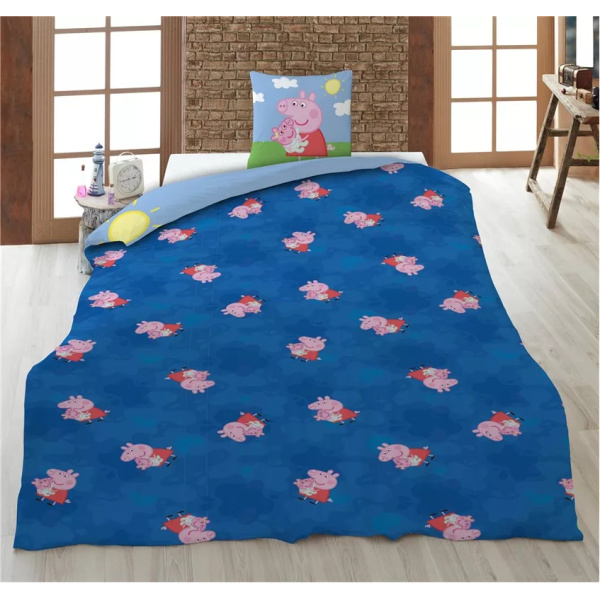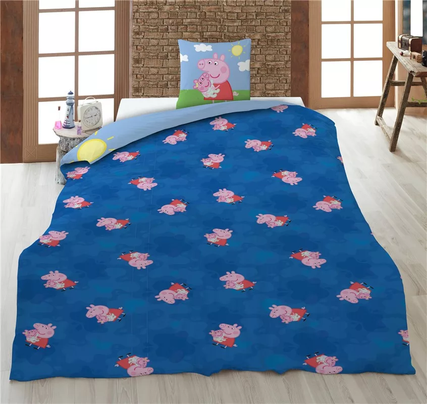 Adaugă un strop de veselie în dormitor cu lenjeria de pat Purcelușa Peppa „New Member”, un set confortabil și plin de culoare, ideal pentru fanii îndrăgitei animații. Designul în nuanțe de albastru, cu imprimeu atractiv, creează o atmosferă plăcută și relaxantă în orice cameră.