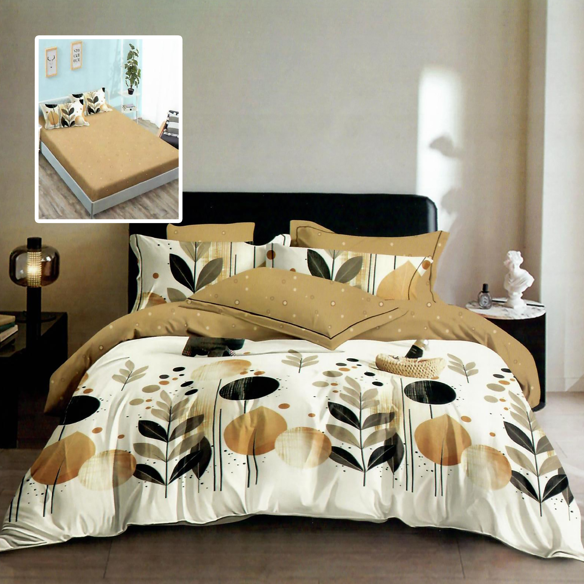 Un avantaj esențial al setului este husa de pat cu elastic, care asigură o fixare fermă și uniformă. Designul său versatil o face compatibilă atât cu saltele de 160×200 cm, cât și de 180×200 cm, eliminând cutele și menținând patul perfect aranjat. Astfel, te bucuri de un aspect ordonat fără efort suplimentar.