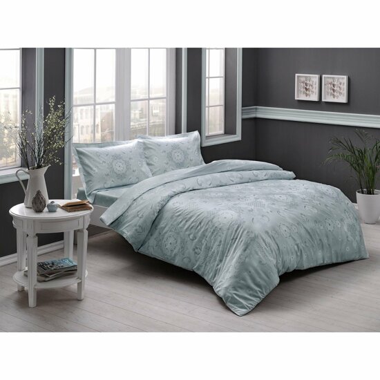 Lenjerie king size Lucca Mint 100% bumbac satinat TAC Mako este calea ideala de a aduce incaperii un nou look si un nivel sporit de confort. Cu un design modern si o calitate superioara a materialelor folosite, TAC imbina delicatetea satinului cu rezistenta fibrelor pentru o lenjerie perfecta.