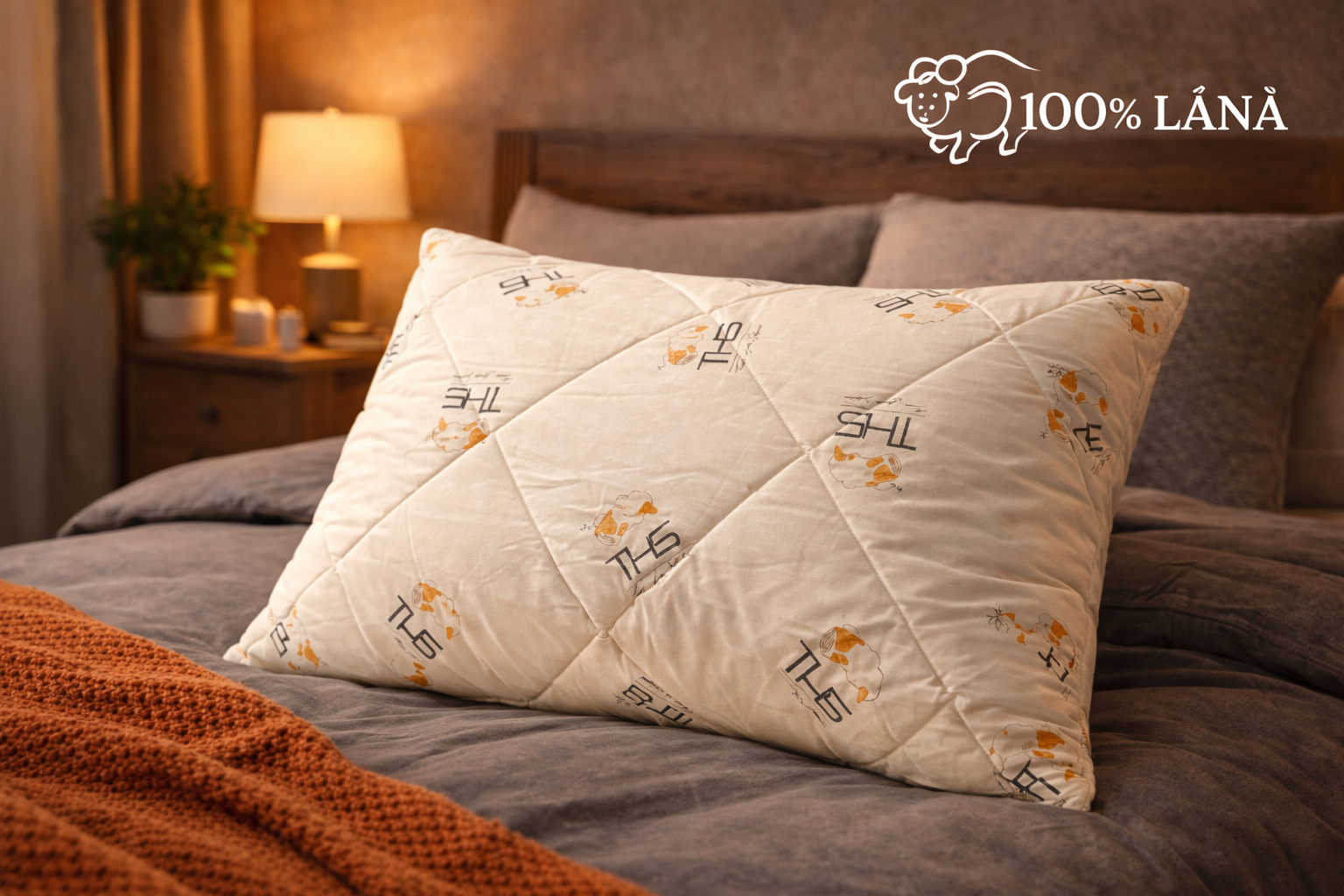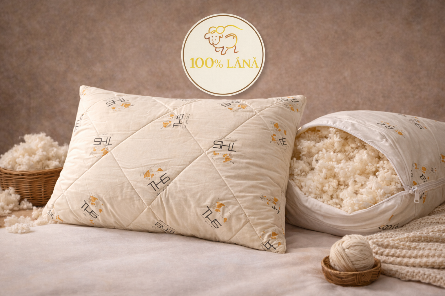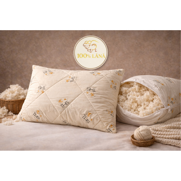 Pernă din Lână Merino Premium – 900 g | 50×70 cm | Crem