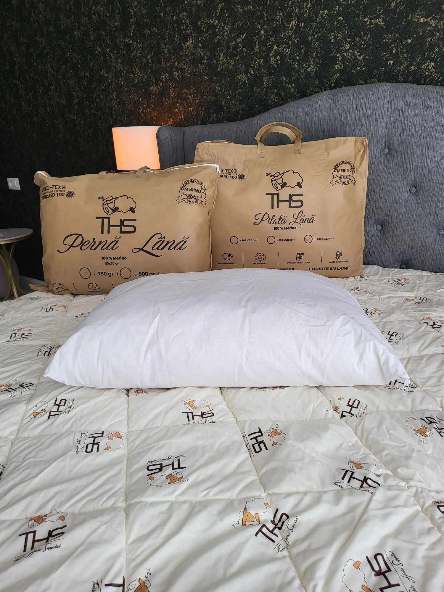 - Umplutură: 100% lână pură virgină, calitate merino