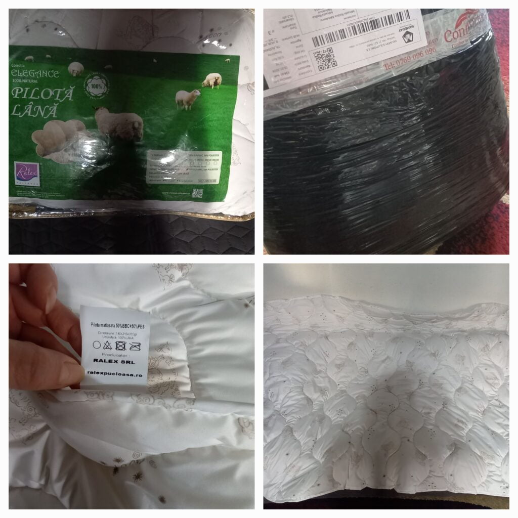 - umplutura: 50% lana naturala – 50% puf siliconizat