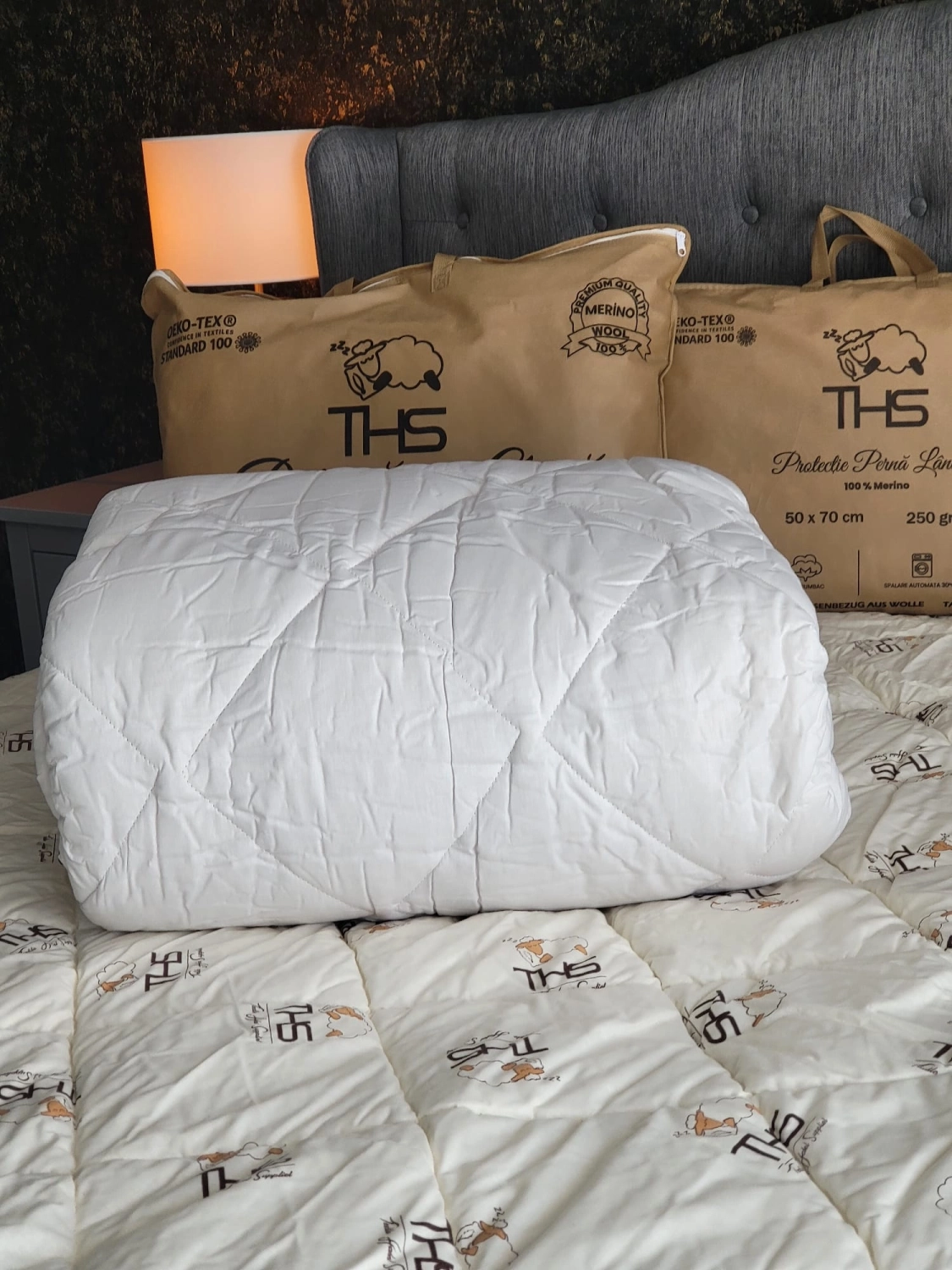 - Umplutură: 100% lână pură virgină (merino)