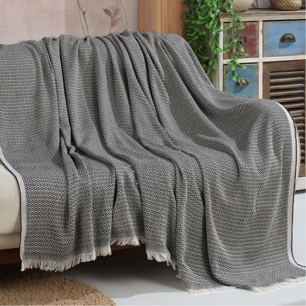 Fabricat dintr-un amestec premium de 85% bumbac și 15% poliester, acest pled nu numai că se simte incredibil de plăcut la atingere, dar este și durabil, garantând că va putea fi folosit ani de zile. Textura sa moale și confortabilă este perfectă pentru pielea sensibilă, oferind un confort fără egal, fără a irita sau a crea disconfort.