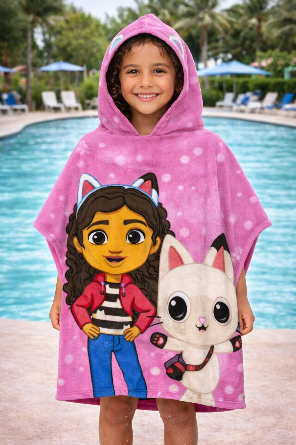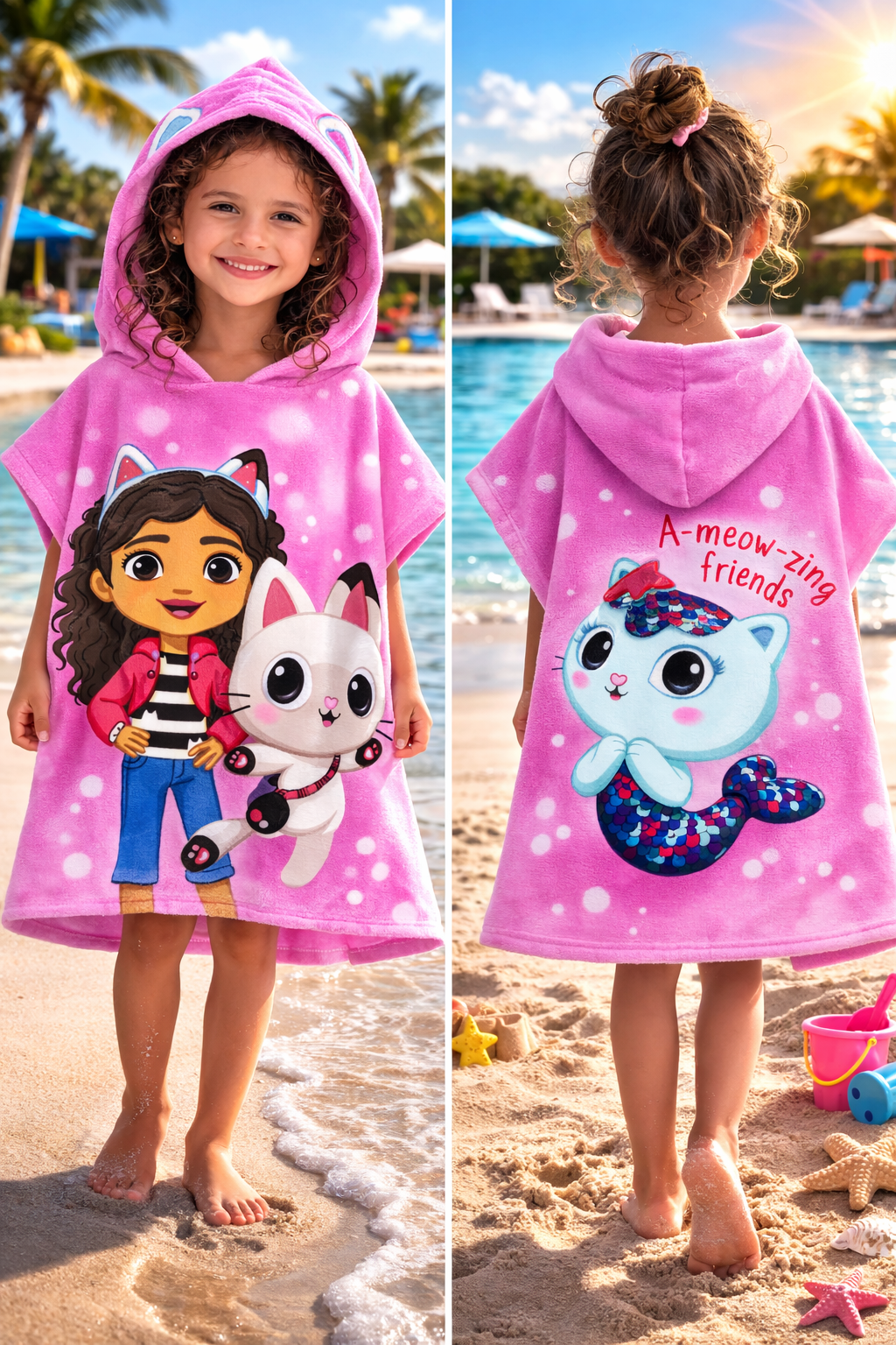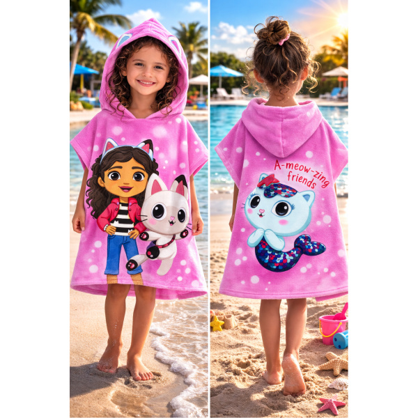Oferă-i copilului tău confort și distracție după fiecare bălăceală cu poncho-ul prosop Gabby’s Dollhouse, special creat pentru micii fani ai personajelor îndrăgite. Cu un design vesel în nuanțe de roz și imprimeu atractiv, acest prosop tip poncho transformă fiecare ieșire la plajă sau piscină într-o experiență plină de bucurie.