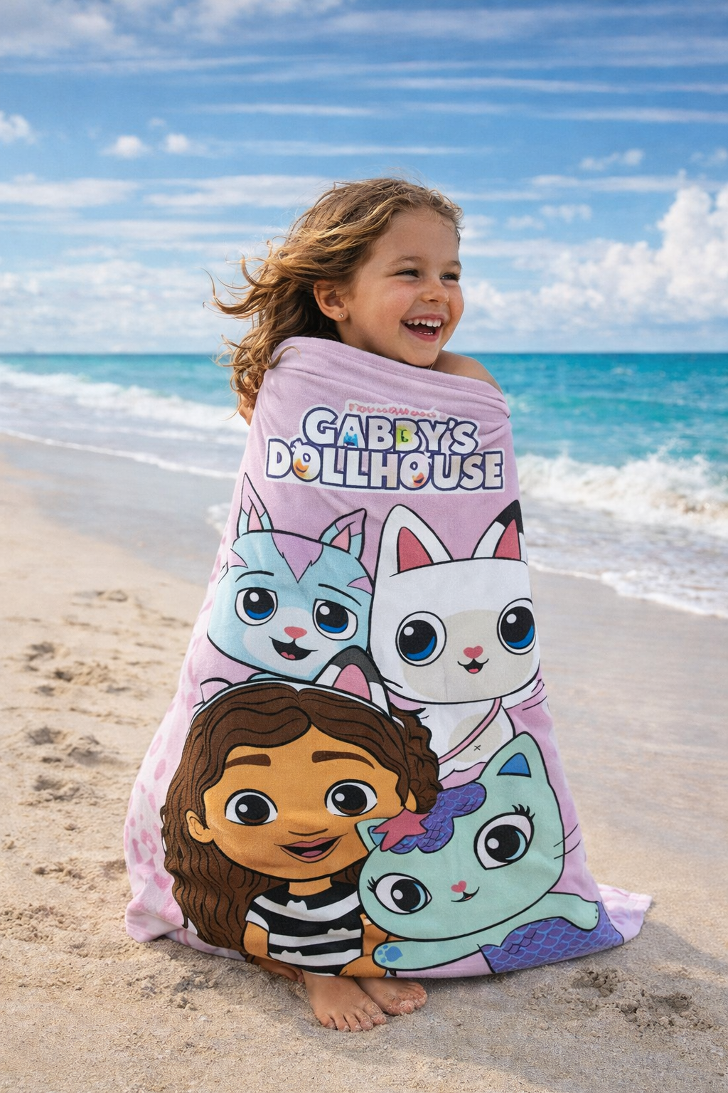 Oferă-i copilului tău confort și distracție după fiecare bălăceală cu prosopul Gabby’s Dollhouse, special creat pentru micii fani ai personajelor îndrăgite. Cu un design vesel în nuanțe de roz și imprimeu atractiv, acest prosoptransformă fiecare ieșire la plajă sau piscină într-o experiență plină de bucurie.