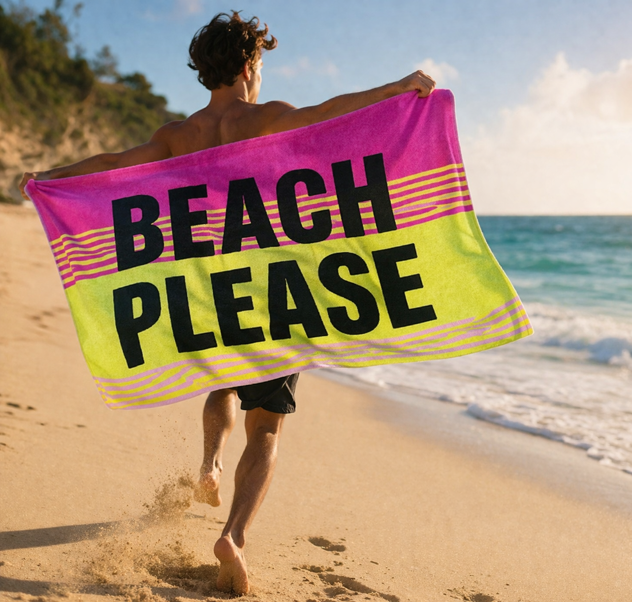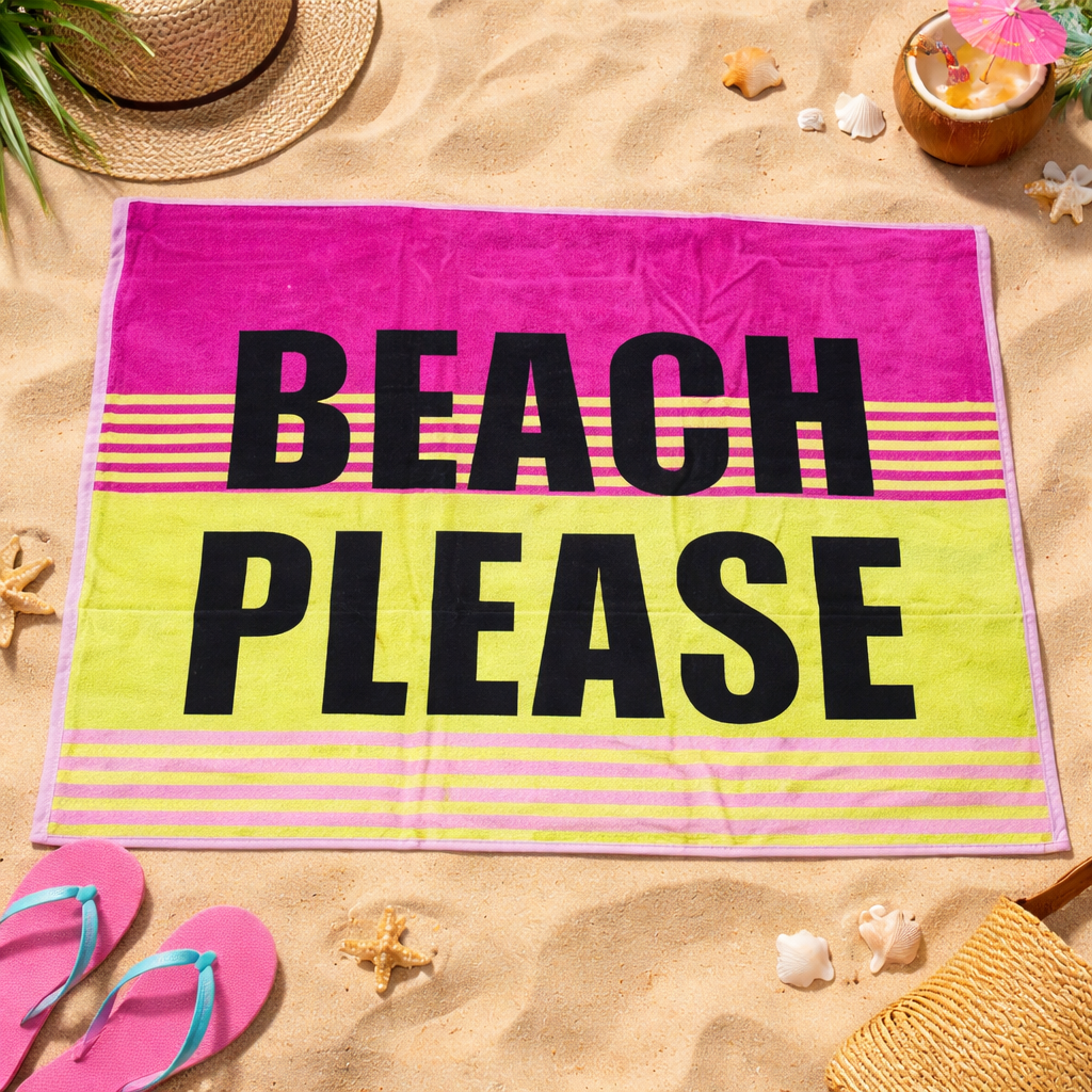 Prosop plaja 80×160 cm 100% bumbac Beach Please este o necesitate pentru orice sezon! Acesta este foarte absorbant, de o calitate superioara si are culori vibrante. Fii pregatit sa te bucuri de senzatia uimitoare a bumbacului! Bucura-te de zilele fierbinti pe plaja, cu acest prosop plaja confortabil si practic.