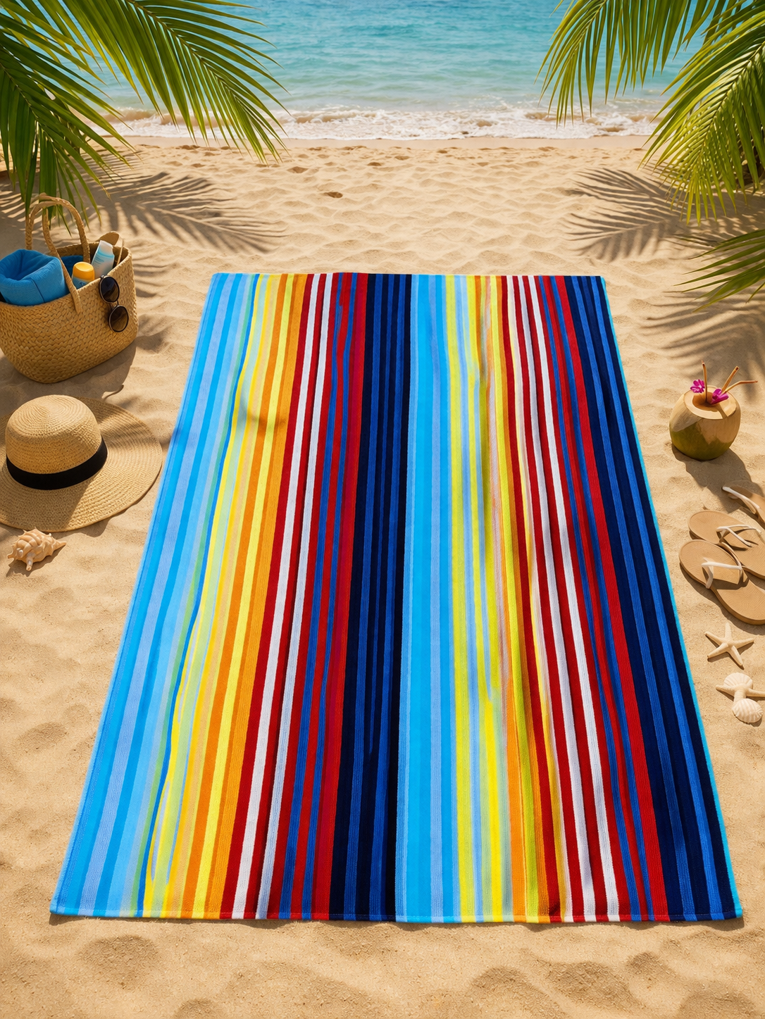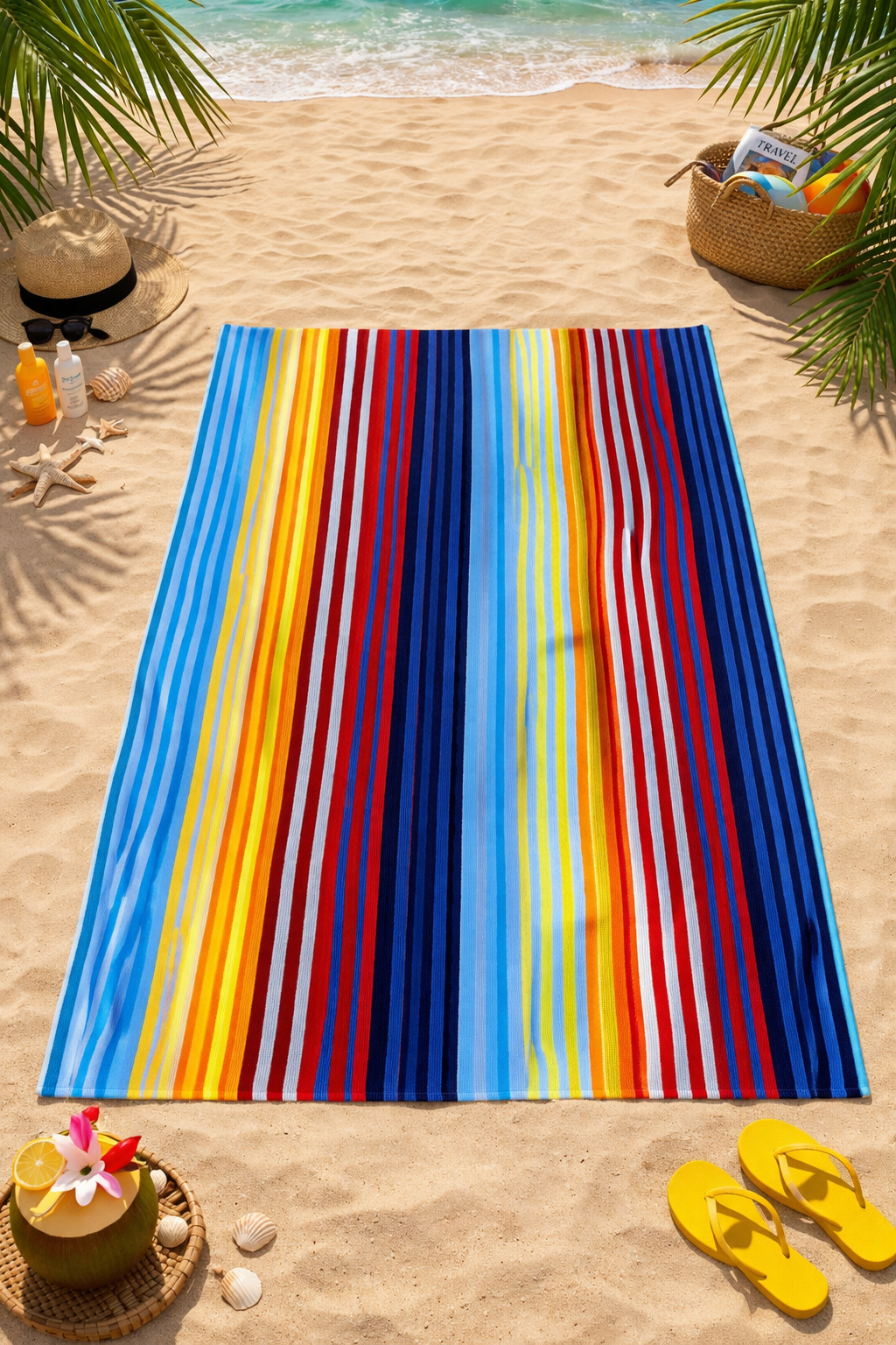 Prosop plaja 80×160 cm 100% bumbac Rainbow este o necesitate pentru orice sezon! Acesta este foarte absorbant, de o calitate superioara si are culori vibrante. Fii pregatit sa te bucuri de senzatia uimitoare a bumbacului! Bucura-te de zilele fierbinti pe plaja, cu acest prosop plaja confortabil si practic.