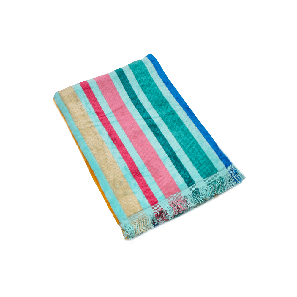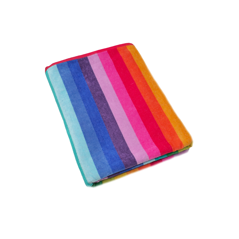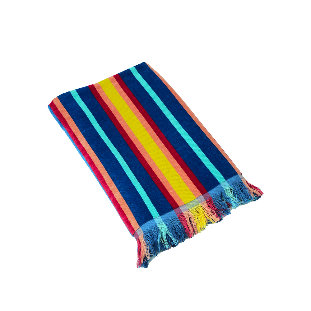 Prosop plaja 85×160 cm 100% bumbac Tricolor ciucuri este o necesitate pentru orice sezon! Acesta este foarte absorbant, de o calitate superioara si are culori vibrante. Fii pregatit sa te bucuri de senzatia uimitoare a bumbacului! Bucura-te de zilele fierbinti pe plaja, cu acest prosop plaja confortabil si practic.