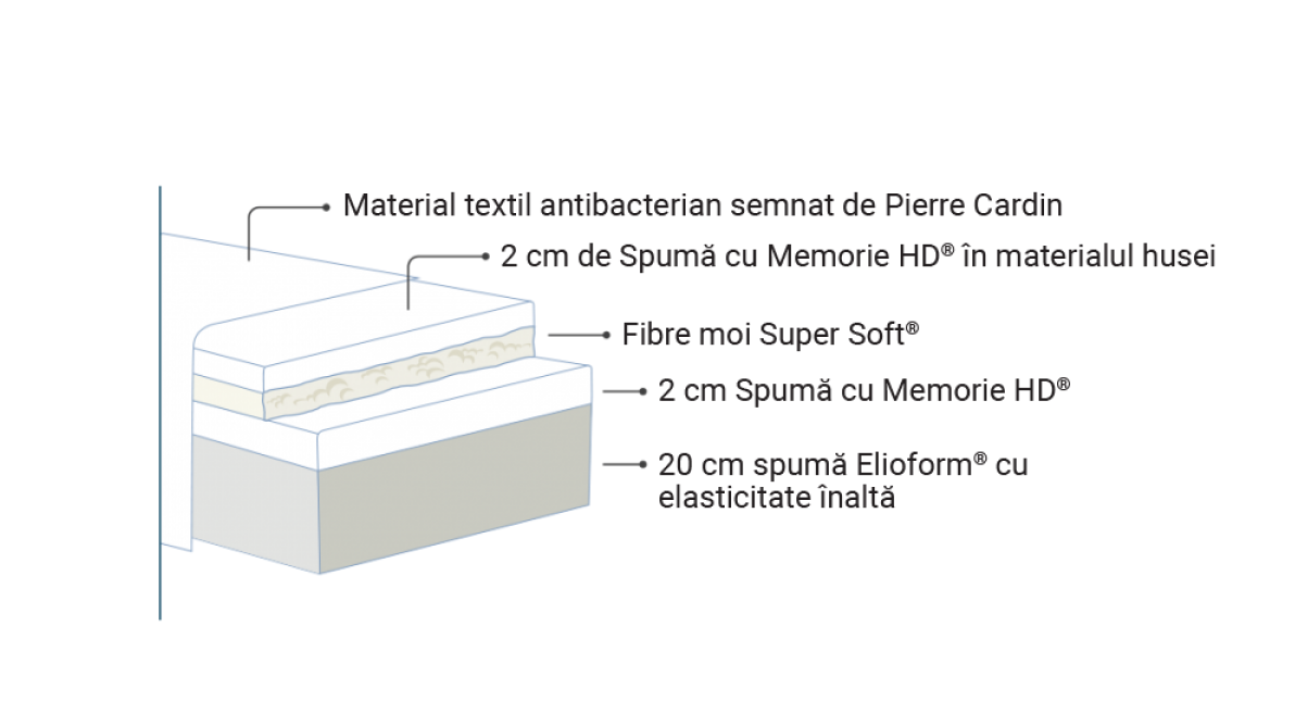- Design exclusivist: Semnat de Pierre Cardin, designul saltelei adaugă o notă de eleganță și rafinament oricărui dormitor.