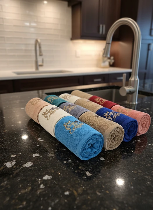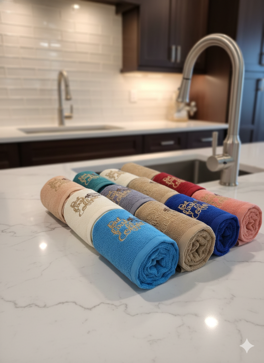 Prosop bucătărie brodat – Cappuccino – 100% bumbac, absorbant și elegant Alege calitatea în bucătăria ta cu prosopul de bucătărie