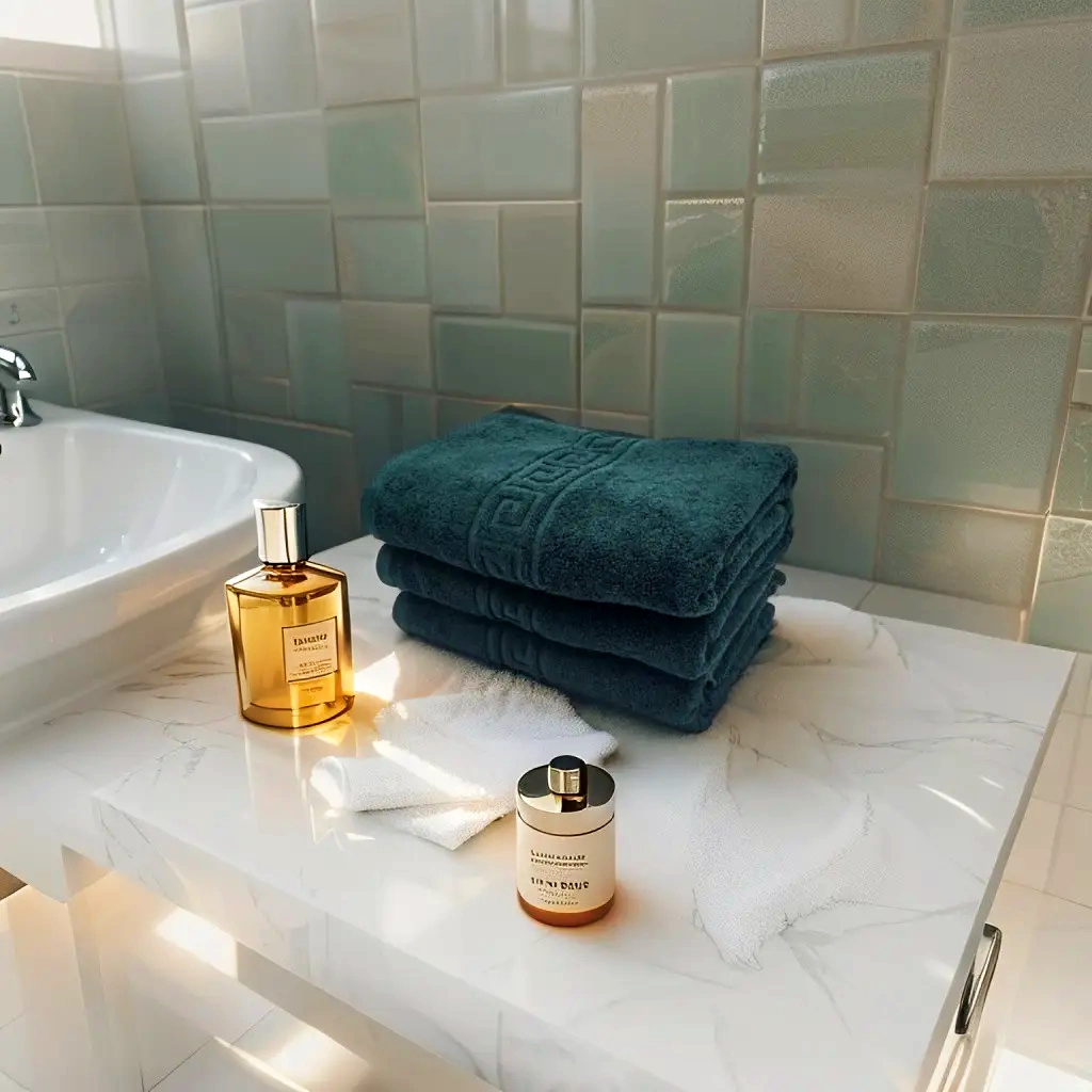 Prosoapele noastre de baie pentru hoteluri sunt de calitate superioară, moi și foarte absorbante. Alege prosoape din bumbac pentru industria HORECA, realizate sub supraveghere atentă, cu cusătura dublă și fir dublu. Materialele pufoase și moi garantează o experiență de relaxare de neegalat. De asemenea, prosoapele pot fi personalizate, fie în țesătură, fie prin broderie. Datorită cusăturilor duble, rezistente, acest produs suportă utilizarea intensivă, fiind ideal pentru băile hotelurilor de 4-5 stele.