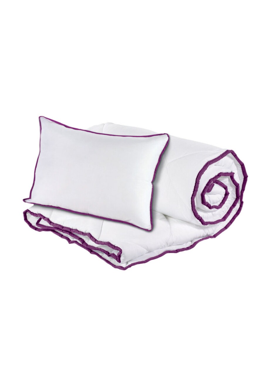 Pilota este confectionata din microfibra moale cu umplutura din puf siliconic, este usoara si pufoasa. Poate fi folosita in orice anotimp.