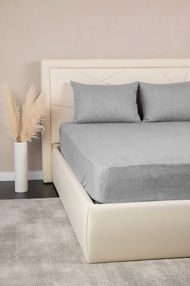 Set Cearceaf cu Elastic + 2 Fete de Pernă 50×70 cm, Bumbac Mercelizat, 160×200 / 180×200 cm-Gri
