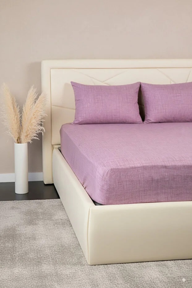 Set Cearceaf cu Elastic + 2 Fete de Pernă 50×70 cm, Bumbac Mercelizat, 160×200 / 180×200 cm-Lila