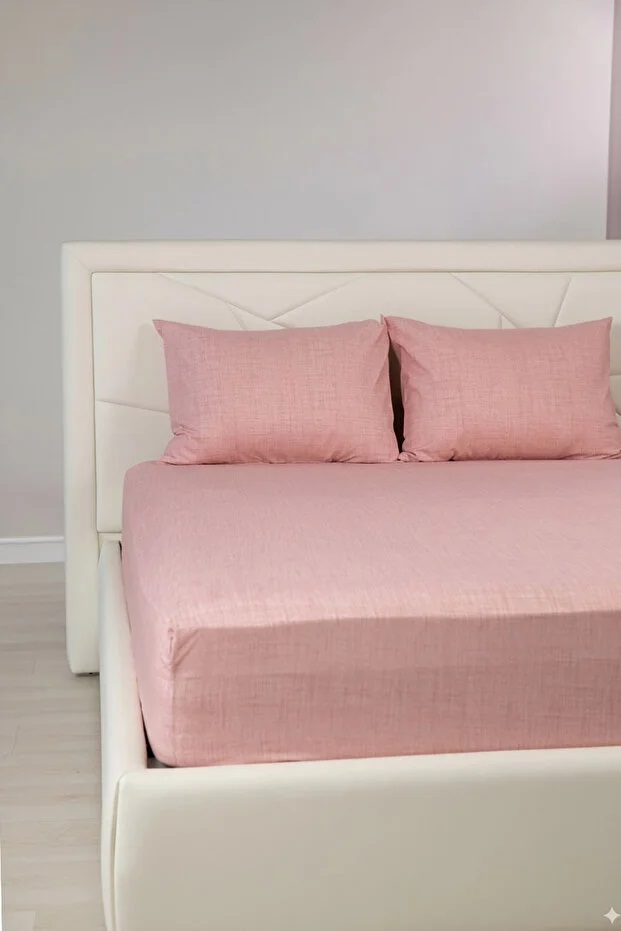 Set Cearceaf cu Elastic + 2 Fete de Pernă 50×70 cm, Bumbac Mercelizat, 160×200 / 180×200 cm-Roz Pudra