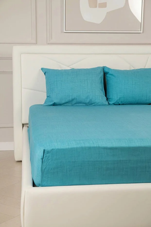 Set Cearceaf cu Elastic + 2 Fete de Pernă 50×70 cm, Bumbac Mercelizat, 160×200 / 180×200 cm-Turcoaz
