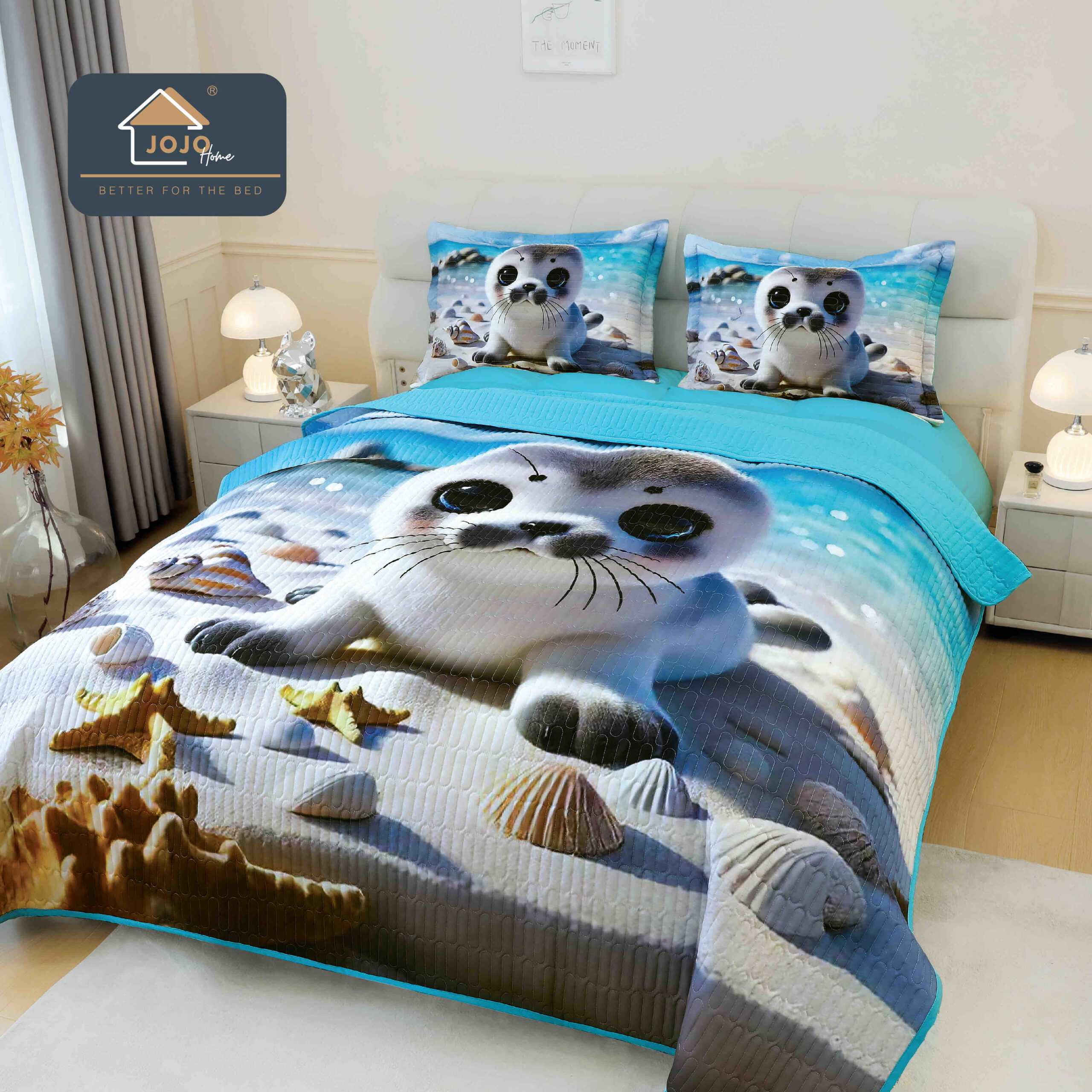 Setul Cuvertură de Pat 5D + 2 Fețe de Pernă – 220×240cm-Foca este alegerea perfectă pentru a adăuga o notă de magie, culoare și căldură în sezonul sărbătorilor.