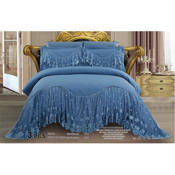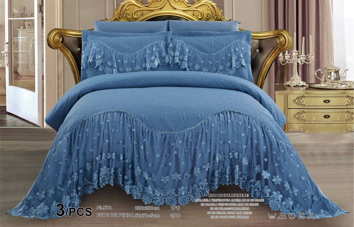 Caracteristici Set Cuvertura Finet Cu Volane 220x270cm + 2 Fete Perna Albastru