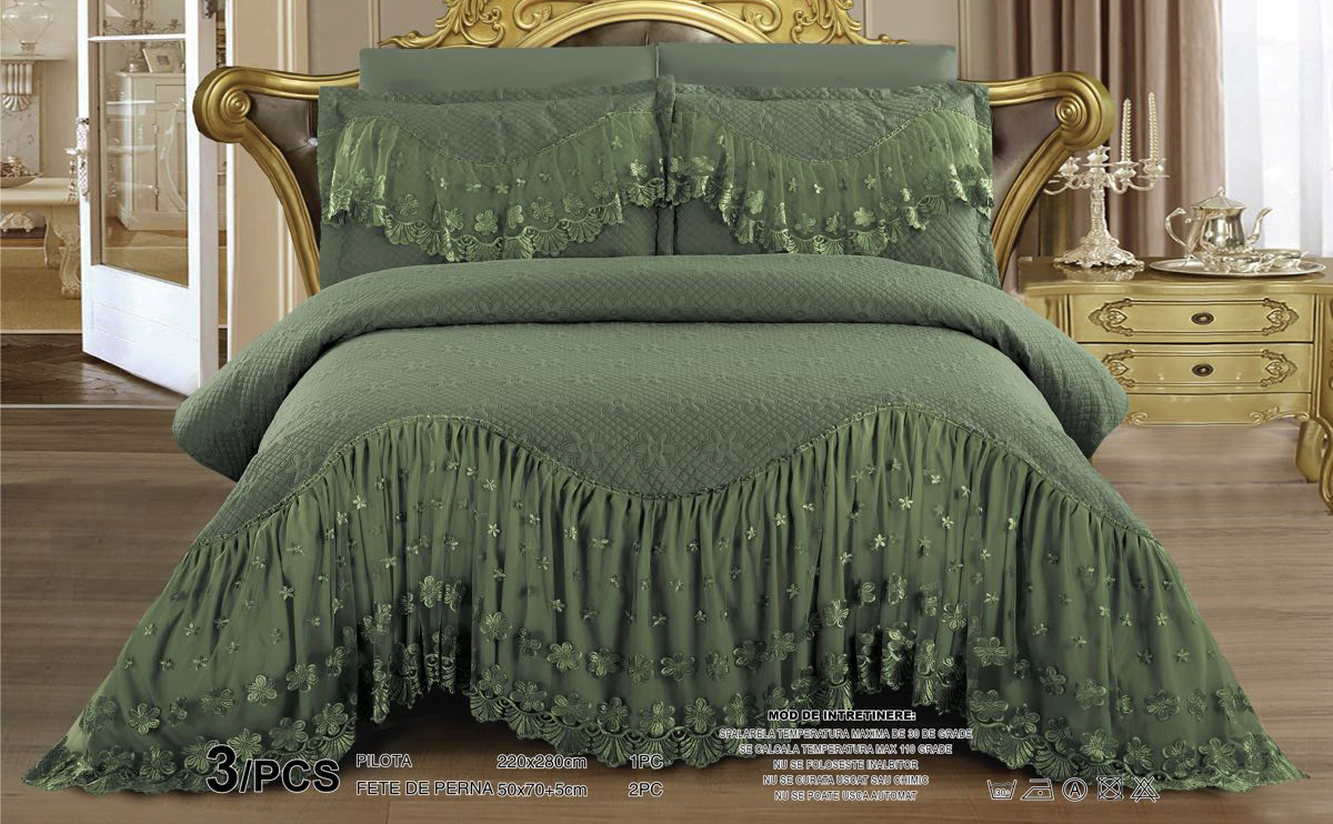 Caracteristici Set Cuvertura Finet Cu Volane 220x270cm + 2 Fete Perna Kaki