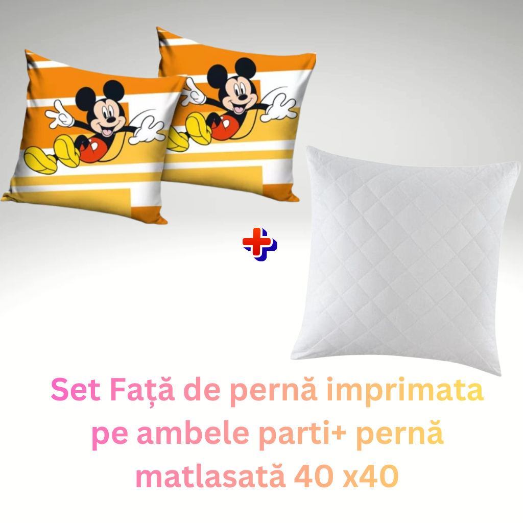 Set Față de pernă imprimata pe ambele fete Disney Mickey-licentiata + pernă matlasată 40×40 cm