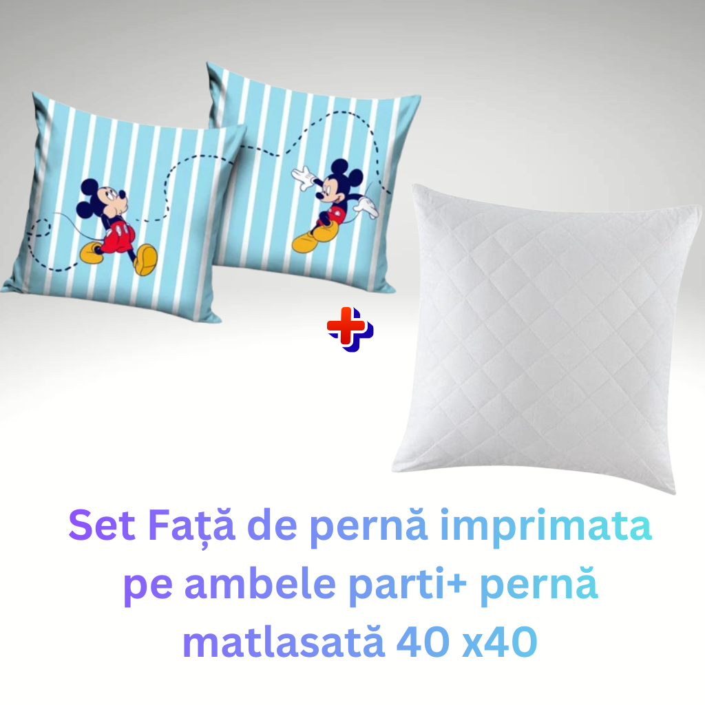 Set Față de pernă imprimata pe ambele fete Disney Mickey3 -licentiata + pernă matlasată 40×40 cm