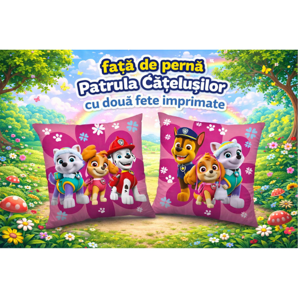1 × Față de pernă Patrula Catelusilor imprimata pe ambele fete (fata +verso)