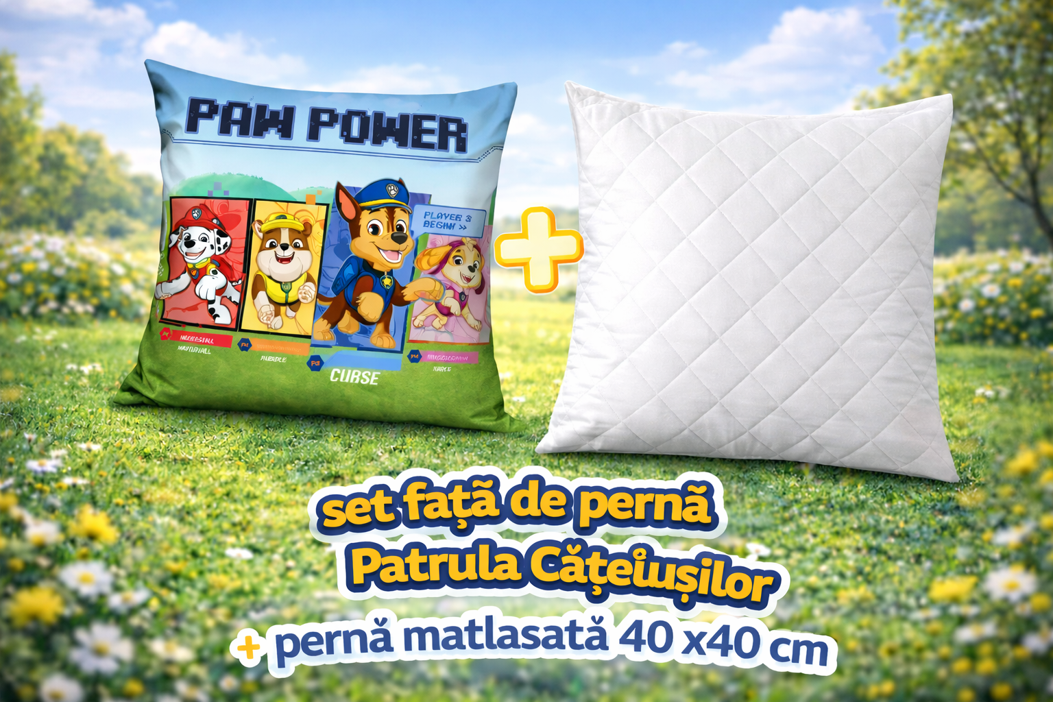 Set Față de pernă Patrula Catelusilor-licentiata + pernă matlasată 40×40 cm