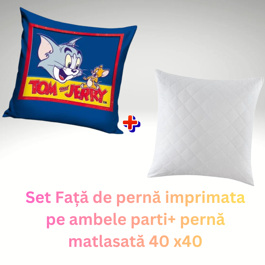 Set Față de pernă Tom și Jerry-licentiata + pernă matlasată 40×40 cm